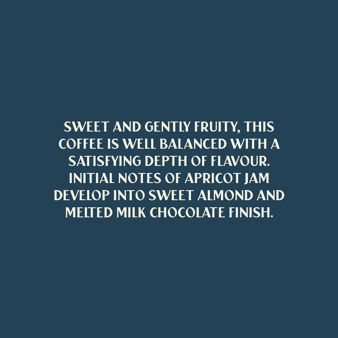 Tasting Notes: Sweet and gently fruity, this coffee is well balanced with a satisfying depth of flavour. Initial notes of apricot jam develop into sweet almond and melted milk chocolate finish.