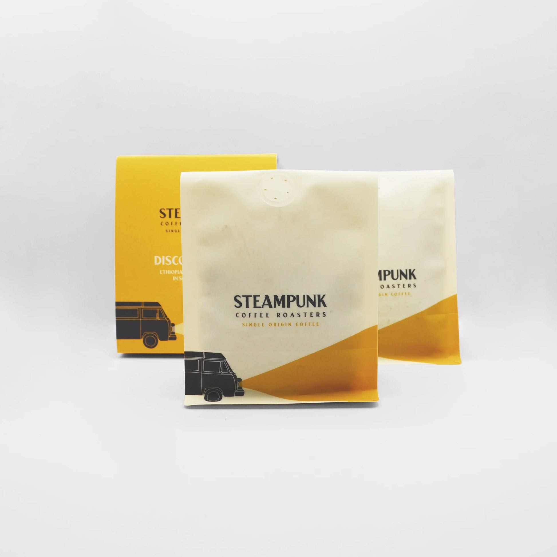This coffee is packaged in a fully recyclable plastic pouch (30% post consumer recycled material) and cardboard sleeve. Find out how to recycle your Steampunk packaging HERE.